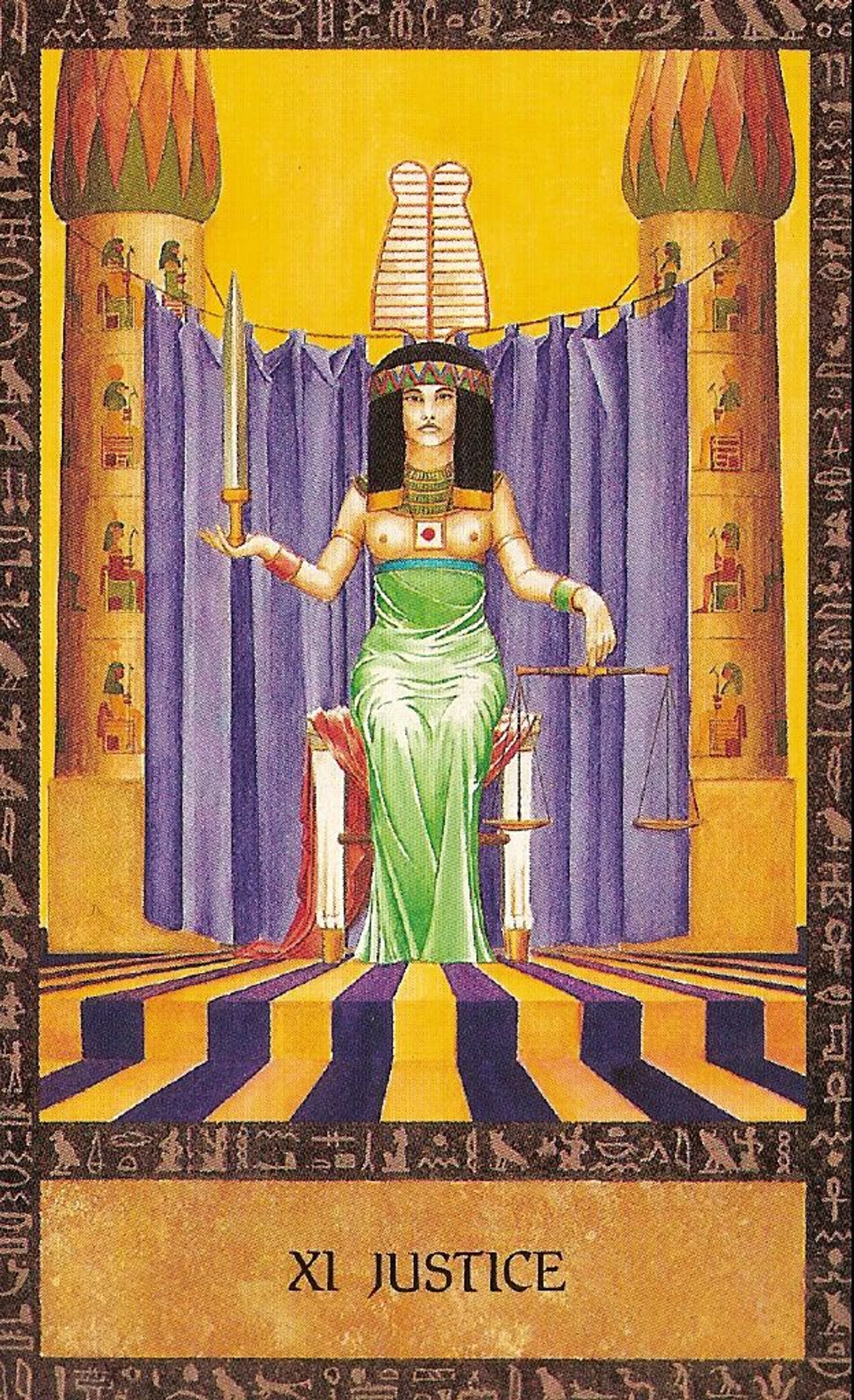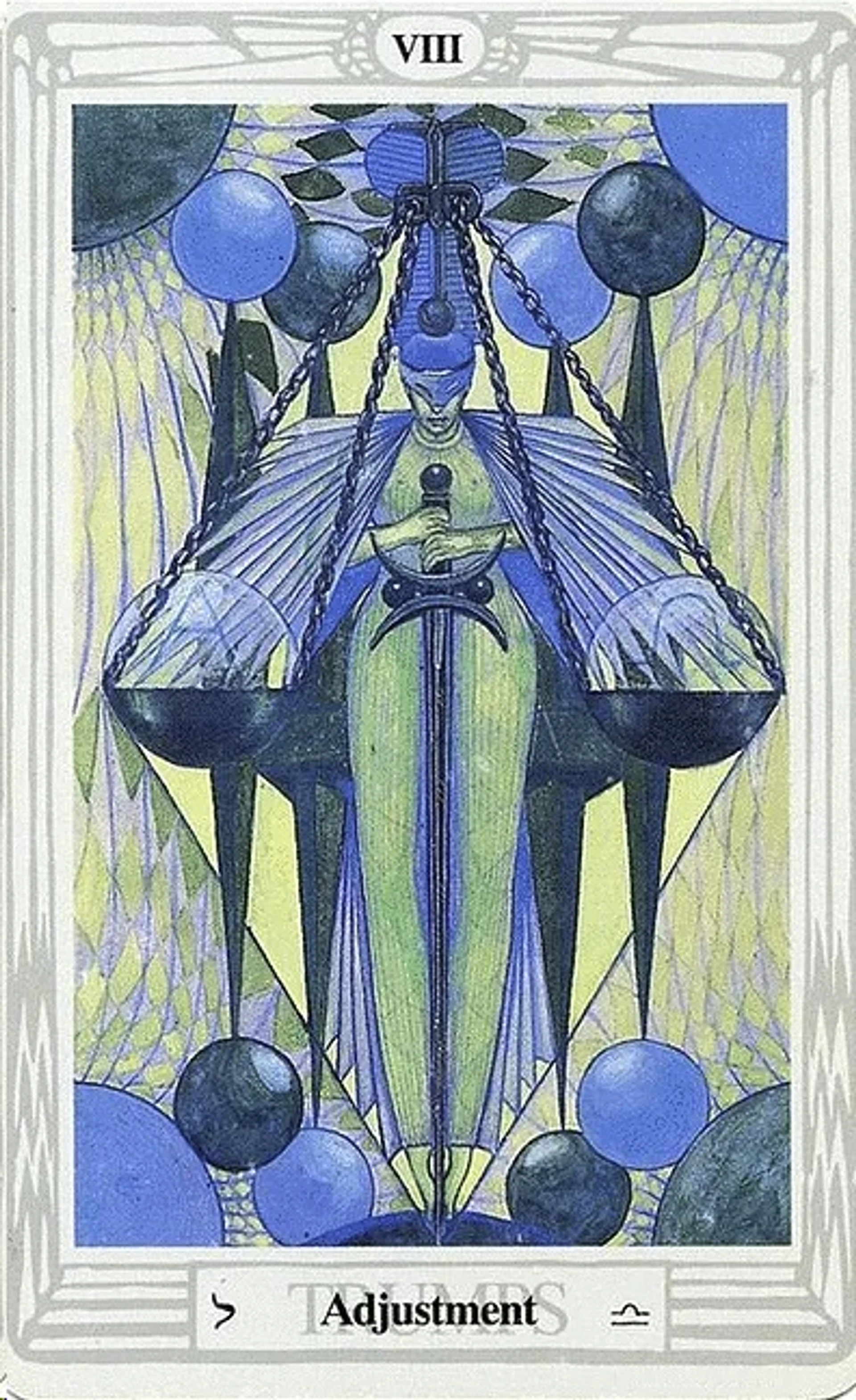 Енергія 8 аркану Справедливість символізує закон, правосуддя, баланс, домовленість та проникливість. Ця людина дуже врівноважена, чесна і відкрита, чудово бачить причинно-наслідкові зв'язки у всьому, що відбувається. Від природи справедливий, терпіти не може будь-яке беззаконня, вміє відкинути емоції та дивитися на те, що відбувається з холодною головою. До справ ставиться докладно, легко дотримується всіх бюрократичних процедур, завжди дотримується своїх обіцянок і вимагає того ж від оточуючих.